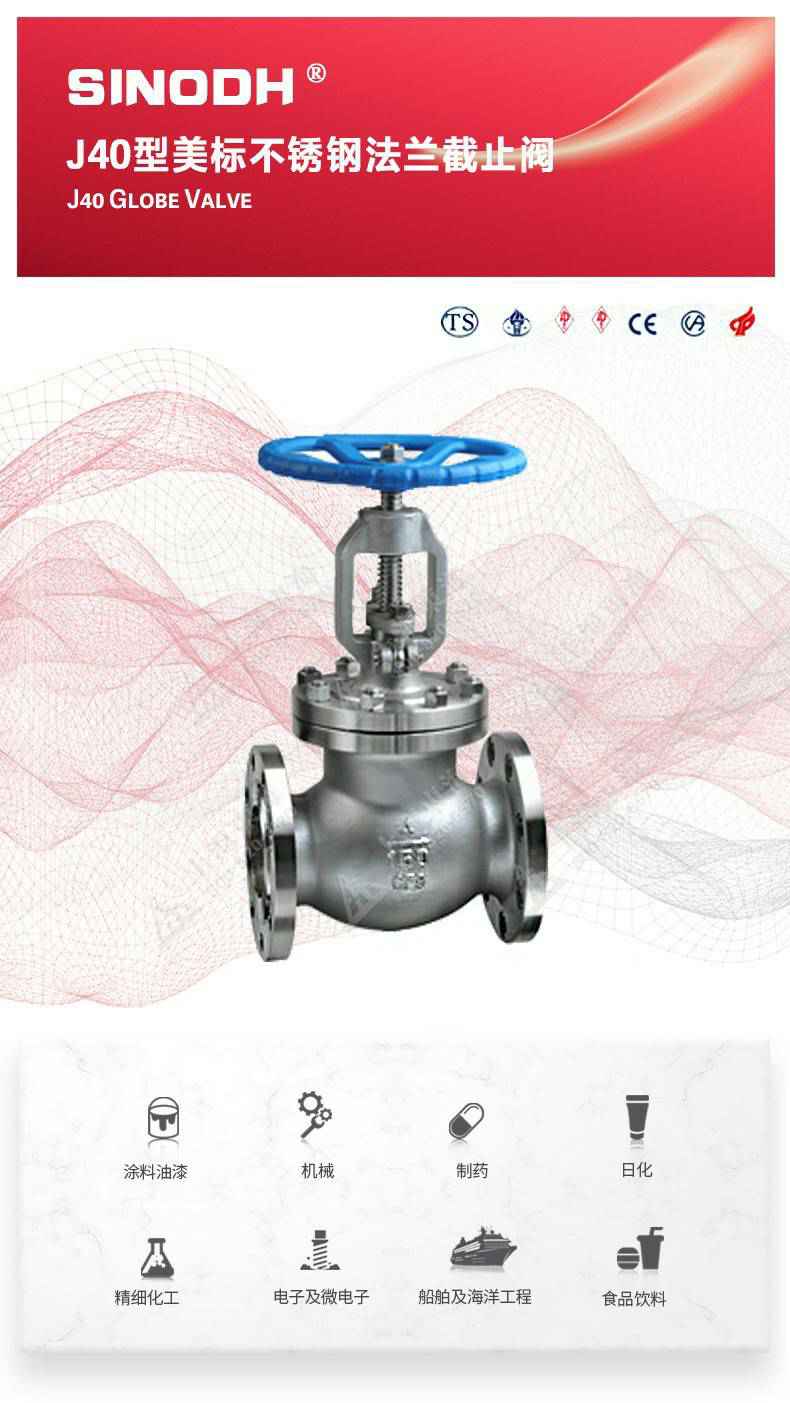 J40型美标不锈钢截止阀,为新利·体育(中国)官方网站-登录入口自主研发生产。本产品的设计制造符合美国国家标准ANSIB16.34,美国石油学会标准AP1 6D和AP I 600要求,产品结构紧凑密、刚性好、封性性能优秀是一种最常见的启闭阀,利用闸板的上下工作来接通(全开)和截断(全关)管道中的流体介质。